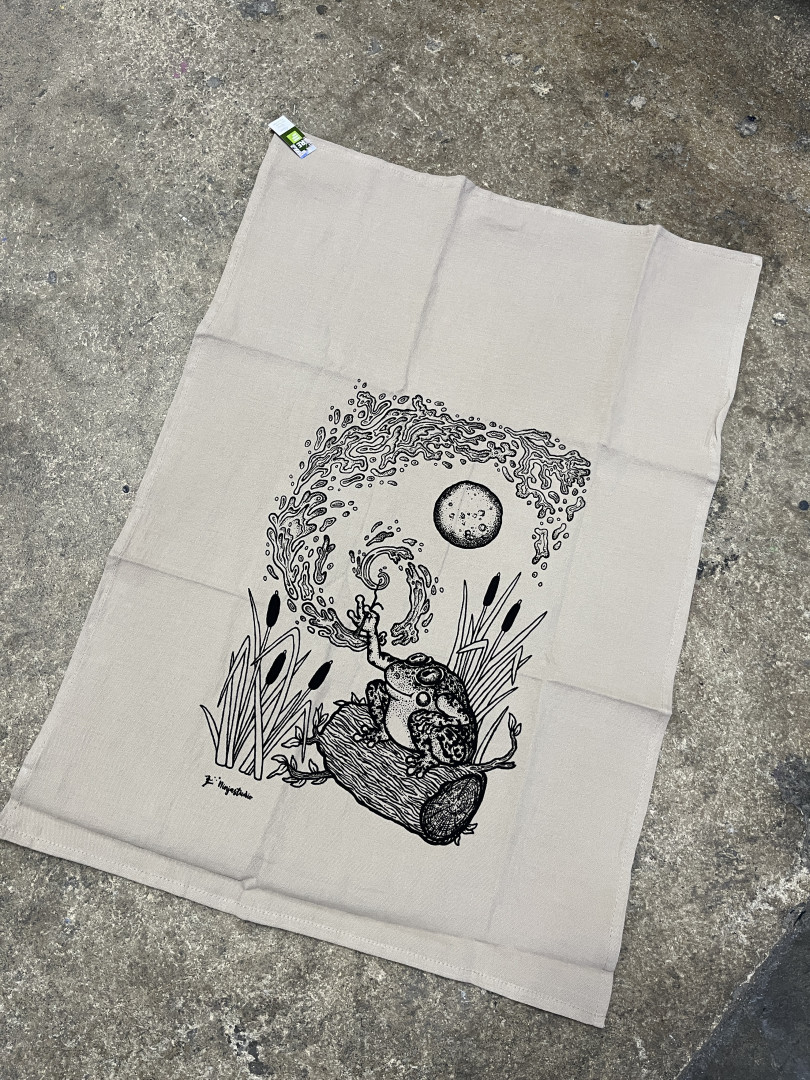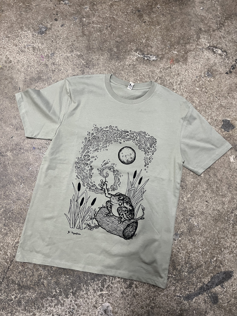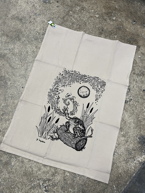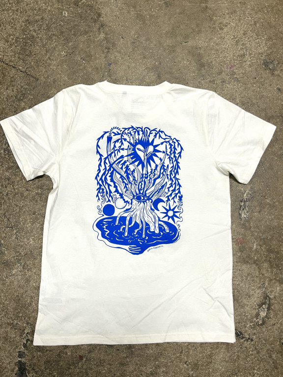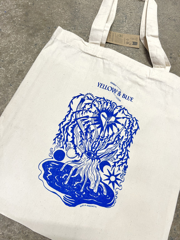 Für den speziellen Irisdruck werden mehrere Farben auf das Sieb gegeben, dabei entstehen schöne Verläufe und Dritttöne. Jeder Druck leicht anders und ein Unikat.
